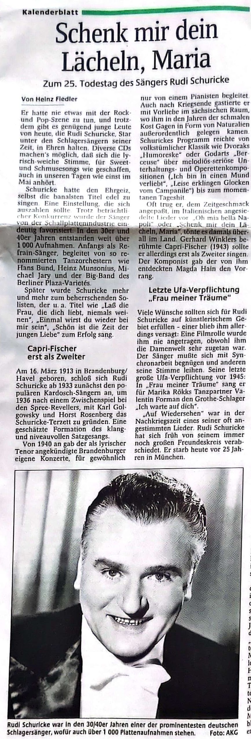 Auf dieser Seite werden Presseartikel zu Rudi Schuricke gesammelt. Die neuesten Ergänzungen erscheinen immer oben auf der Seite.