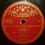 Eine Schuricke-Diskografie zu erstellen, wäre eine Lebensaufgabe, die ich gern Leuten überlasse, die sich bereits seit Jahrzehnten mit Rudi Schuricke befassen. An dieser Stelle nur eine kleine Auswahl von Schellackplatten von den 1930 bis 50er Jahren: Schuricke mit dem Schuricke-Terzett, als Refrainsänger und als Schlagersänger.