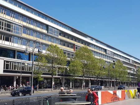 „Entlang der westlichen Längsseite verläuft im ersten Obergeschoss eine Galerie. Unter dieser Galerie verläuft im Erdgeschoss ein Gang, der das Foyer mit dem Ostflügel verbindet. An beiden Längsseiten des Sendesaalkomplexes sind Fenster in Doppel-, manche sogar in Dreifachausführung in die Wände eingelassen, die mit Vorhängen verschlossen werden können. Die Idee hinter der mehrfachen Ausführung der Fenster ist es, einen Luftpuffer zum Abfangen des Schalls von außen aufzubauen. Die längere Schmalwand beinhaltet die Regiekabine (auch Regiezimmer oder Abhörraum) im EG. Über und neben den Fenstern der Regiekabine befinden sich zweiseitige, türartige Holztafeln. Auch die Seitenwände sind mit diesen Holztafeln verkleidet, die man mithilfe von Scharnieren umklappen kann, um den Schall zu dämpfen. Die eine Seite (Holz) reflektiert, die andere Seite (Celotex) absorbiert den Schall. So lassen sich die unterschiedlichsten Nachhallzeiten einstellen.“ (Quelle: Wikipedia)